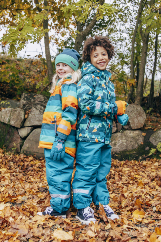 De kleuren van deze jas zijn heel mooi helder! De strepen lopen van donkergroen naar lichtgroen, warmgeel en oranje en zorgen samen voor een hele vrolijke jas die zowel leuk is voor een jongen als een meisje.